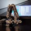 This robotic arm is a DIY KIT with many accessories and requires patience to assemble.