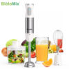 1. COMPLETE IMMERSION BLENDING SYSTEM: The BioloMix Hand Blender is equipped with attachments for blending, whisking, and chopping. Its spacious chopper bowl and smoothie cup are entirely BPA-free.