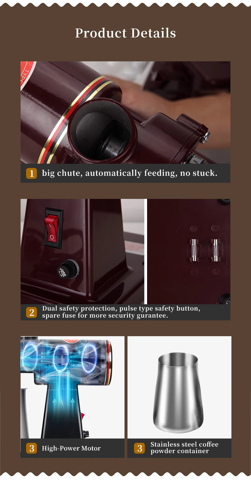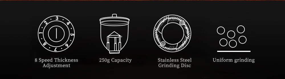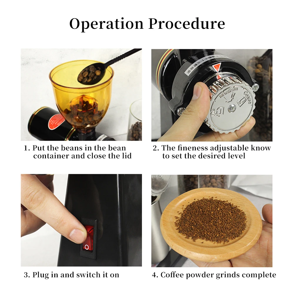 【Durable Grinder】-This bean grinder has a disc made of stainless steel, The special hard steel knife, not prone to debris. The grinding speed, not easy to heat.You can directly grind