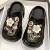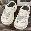Bling Pearls Diamond Cute Bear Decor Vented Clogs Slides 7CM Platfrom Outdoor Beach Sandals Summer Girls Slippers Women Shoes