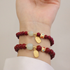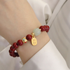 Bring Good Luck Cinnabar Red Gold Color Beads Natural Stone Beaded Chinese Style Bracelet for Women Party Jewelry Gift