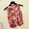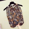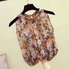 Casual Halter Floral blouse women 2024 summer Korean Sexy fashion elegant loose sleeveless halter retro chiffon shirt Vintage