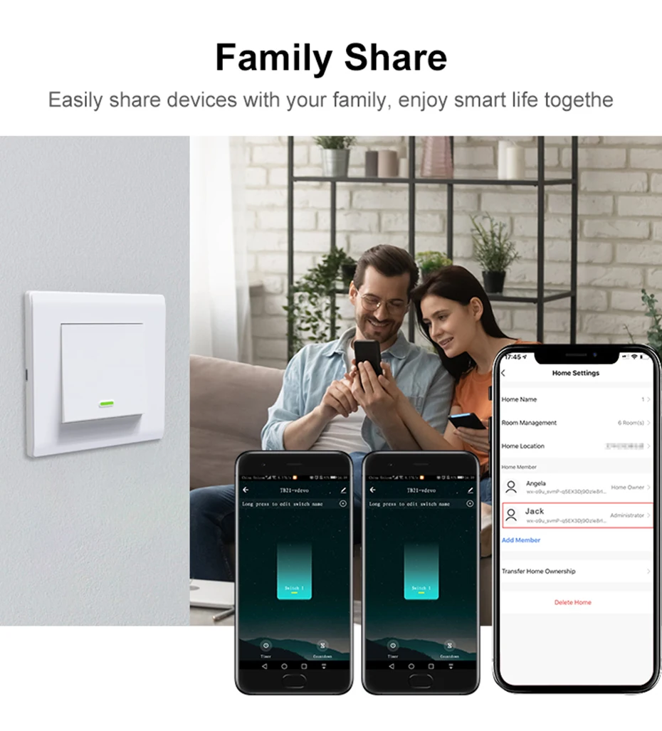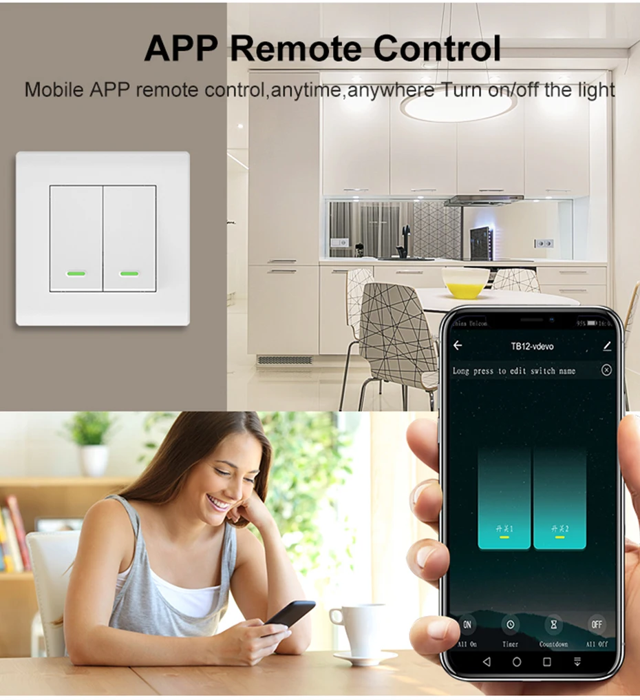 بالإضافة إلى التشغيل السلس على زر التبديل والتحكم اليدوي ، يتوافق مفتاح ذكي WiFi الجديد هذا مع تطبيق الحياة الذكية للتحكم عن بعد اللاسلكي بغض النظر عن مكان وجودك ، توفير حياتك الذكية مع الذكاء الحقيقي والراحة. الأهم من ذلك ، هو جمعية متعددة التحكم المدعومة في التطبيق لربط إلى مفتاح ذكي آخر es في التطبيق لوضع التحكم آخر.