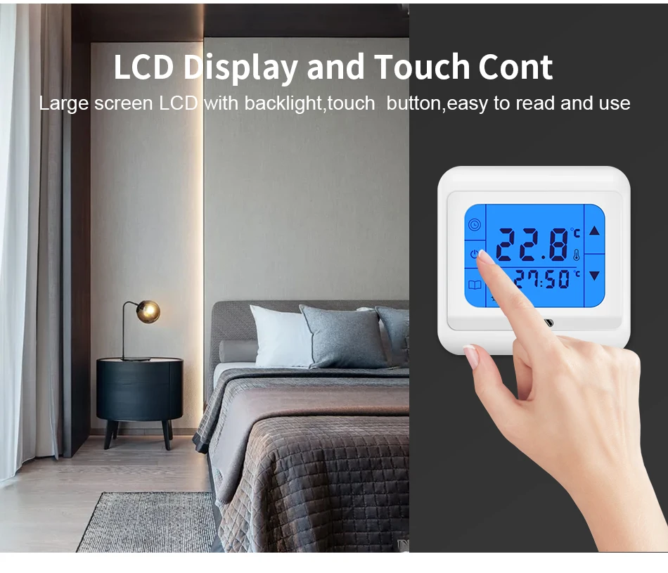 1. شاشة تعمل باللمس التدفئة ترموستات مع البرمجة الأسبوعية تعتمد أحدث تكنولوجيا مكو.