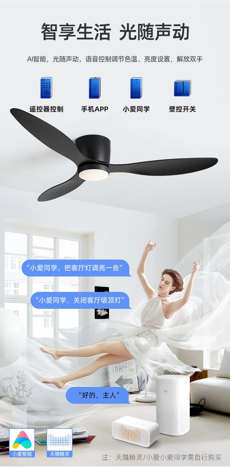 قطر المروحة: 42 بوصة/107 سم 52 بوصة/132 سم