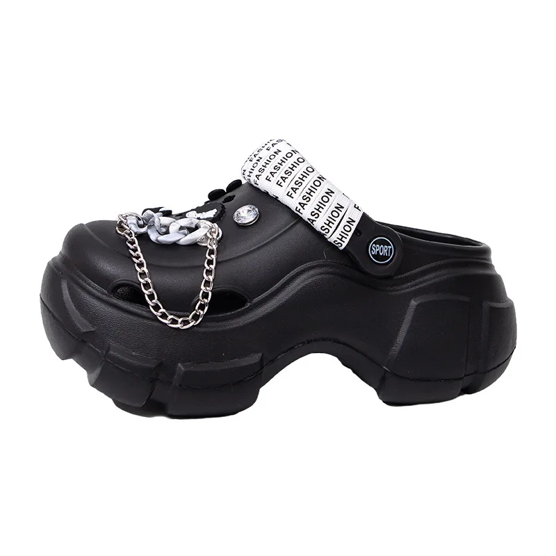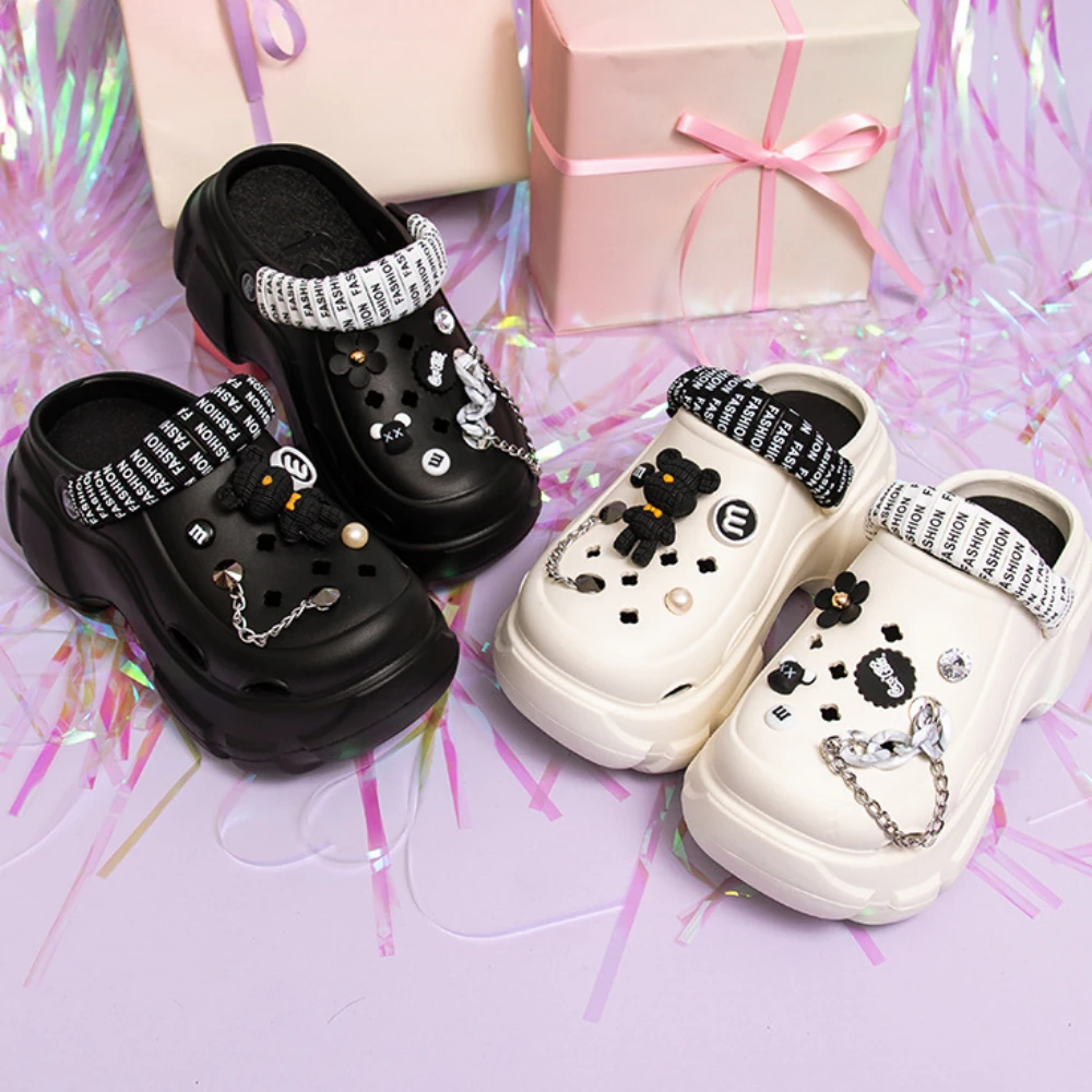 Chain Shoe Laces Decor Diy Removable Buckle Cartoon Diamond Bear Women’s Cute Versatile Thick-Soled Sandals