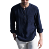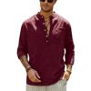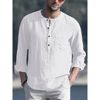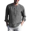 Cotton Line Hot Sale Men’s Long-Sleeved Shirts Summer Solid Color Stand-Up Collar Casual Beach Style Plus Size