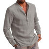 Cotton Line Hot Sale Men’s Long-Sleeved Shirts Summer Solid Color Stand-Up Collar Casual Beach Style Plus Size