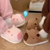 Couple Cute Kapybara Design Slippers Women Winter Casual Soft Heel Slippers Platform Fur Warm Indoor Comfortable Home Slippers