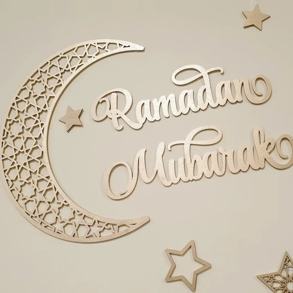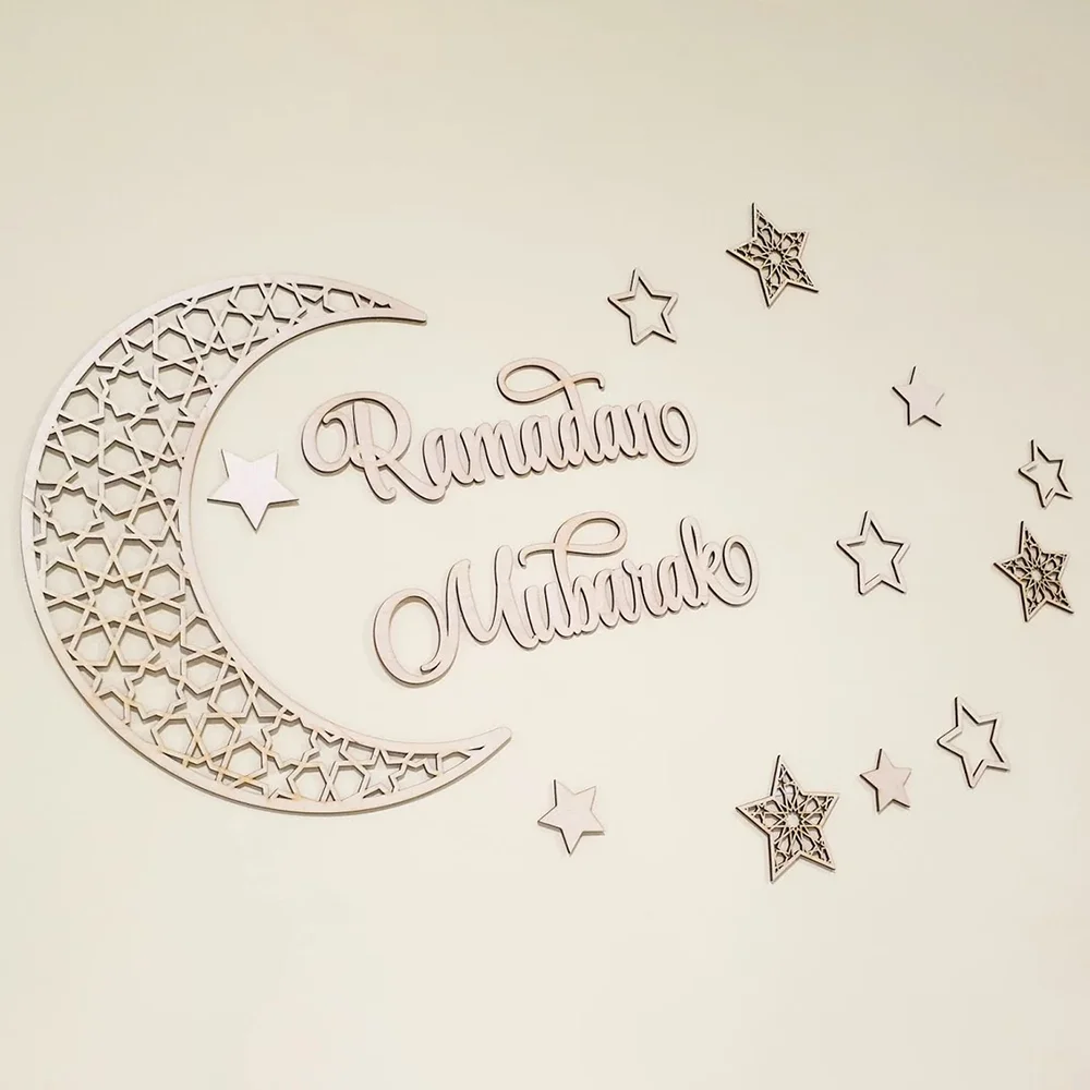 Custom Eid Decoration Ramadan Moon Ramadan Mubarak Sign Eid Moon Ramadan Wall Decoration Islamic Wooden Sign Set