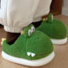 Cute Dinosaur Winter New Women Slipper Soft Heel Platform Fur Warm Indoor Comfortable Home Fluffy Home Slippers