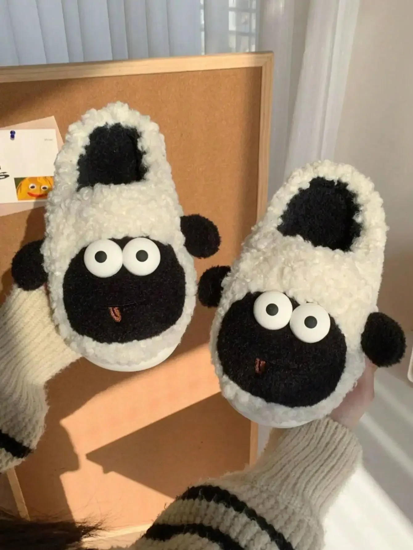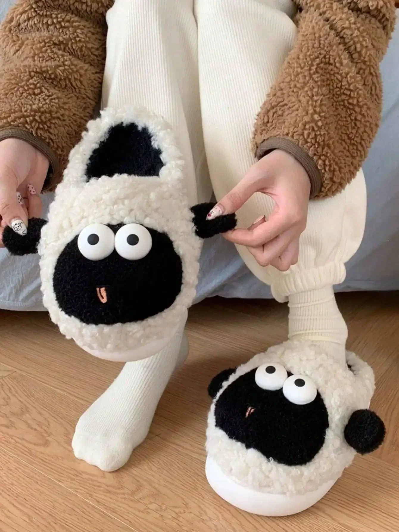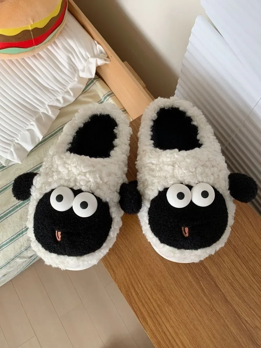 Cute Sheep Winter New Women Slipper Soft Heel Platform Fur Warm Indoor Comfortable Home Fluffy Home Slippers