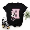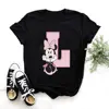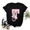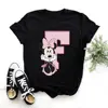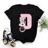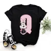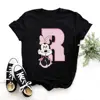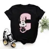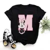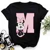 Disney Minnie Mouse Children Cotton T-shirt Funny 26 Capital Letters A-Z Print Tshirt Gothic Girl Kid Tops Summer Kawaii Tops