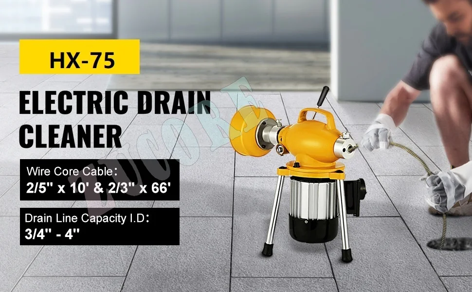 The versatile sewer cleaning machine is an easy-to-use drain machine with a portable design. It features a durable iron integrated body that maximizes its lifespan. Pull the handle down, and the cable can spin at 400rpm. Ideal for the sink, shower, and floor drains.