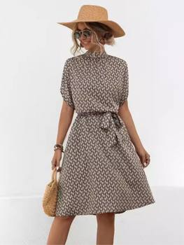 New Print Women’s Dress Summer Elegant Fashion O Neck Short Sleeve Lace Up Office Beach Party Dresses Female Casual Vestidos