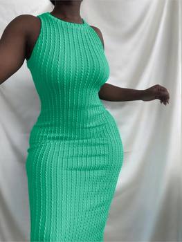 New Summer Women Dress Fashion Casual Knitted Sleeveless O Neck Black Dress Female Package Hips Elegant Beach Party Dresses