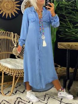 Fashion Casual Dress New Women Autumn Elegant Button Long Sleeve Loose Turn-down Collar Solid Office Party Dresses Robe Femme