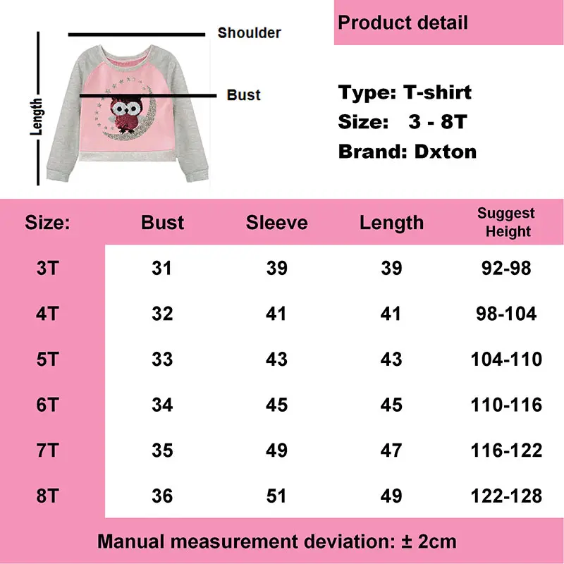 | حجم | الملابس طول | تمثال نصفي | الكتف العرض | أقترح سن | أقترح ارتفاع |