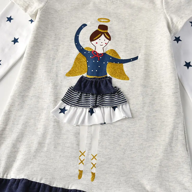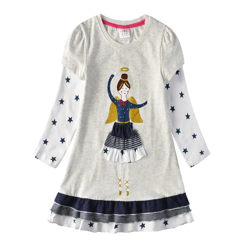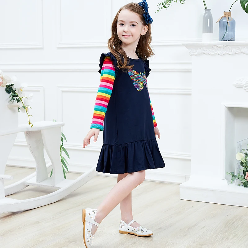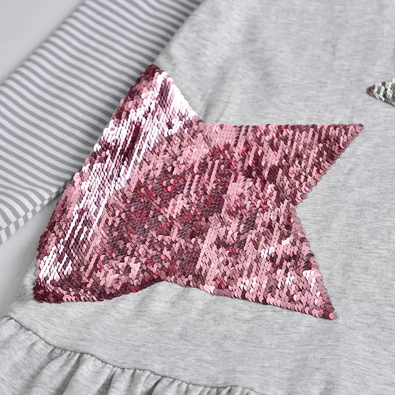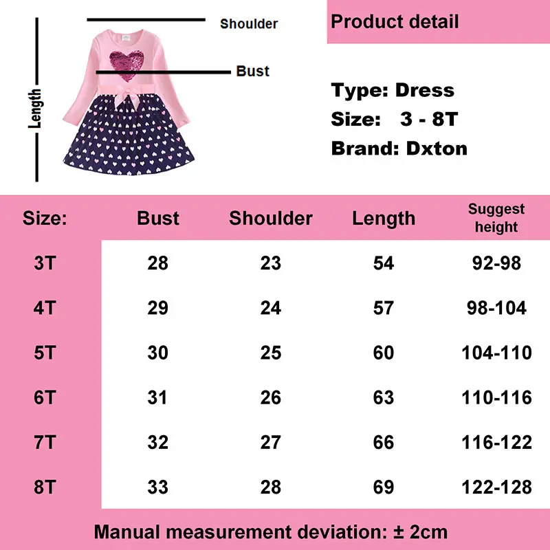 DXTON الفتيات فستان الشتاء الاطفال الترتر فستان الفتيات القلب تصميم فساتين للبنات الأطفال طويلة الأكمام القطن الاطفال Vestidos LH5740