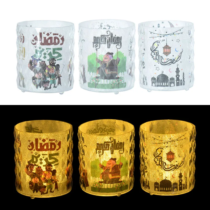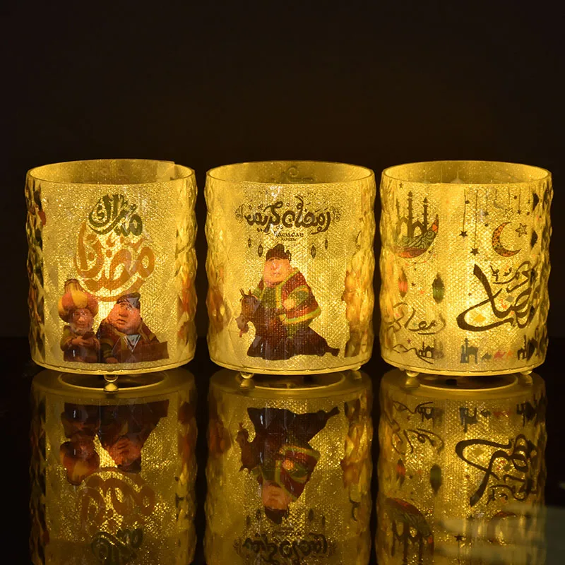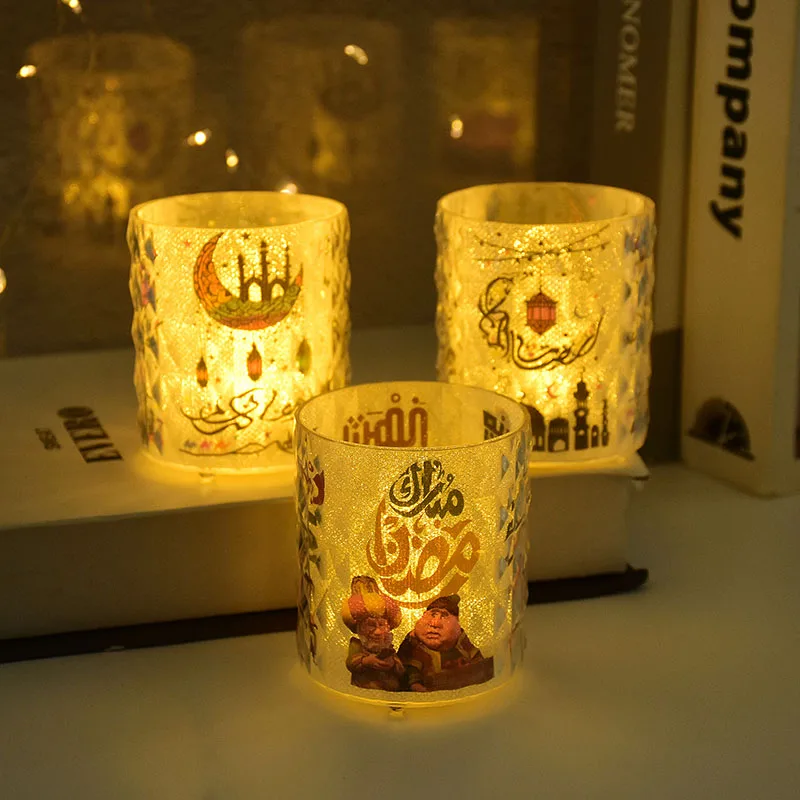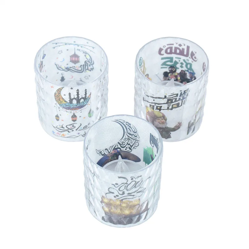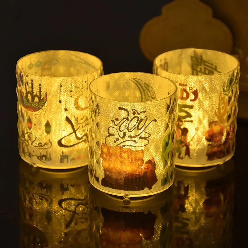 Eid Mubarak LED Candle Cup with Lights Ramadan Home Decoration Table Night Lamp Eid Al Adha Gifts Islamic Muslim Party Supplies