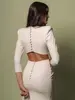 Elegant 3d Flower Hollow Out Slit Long Women Dress Fashion Skinny O Neck Full Sleeve Button Dresses New Lady Highstreet Robes