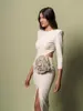 Elegant 3d Flower Hollow Out Slit Long Women Dress