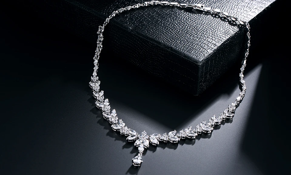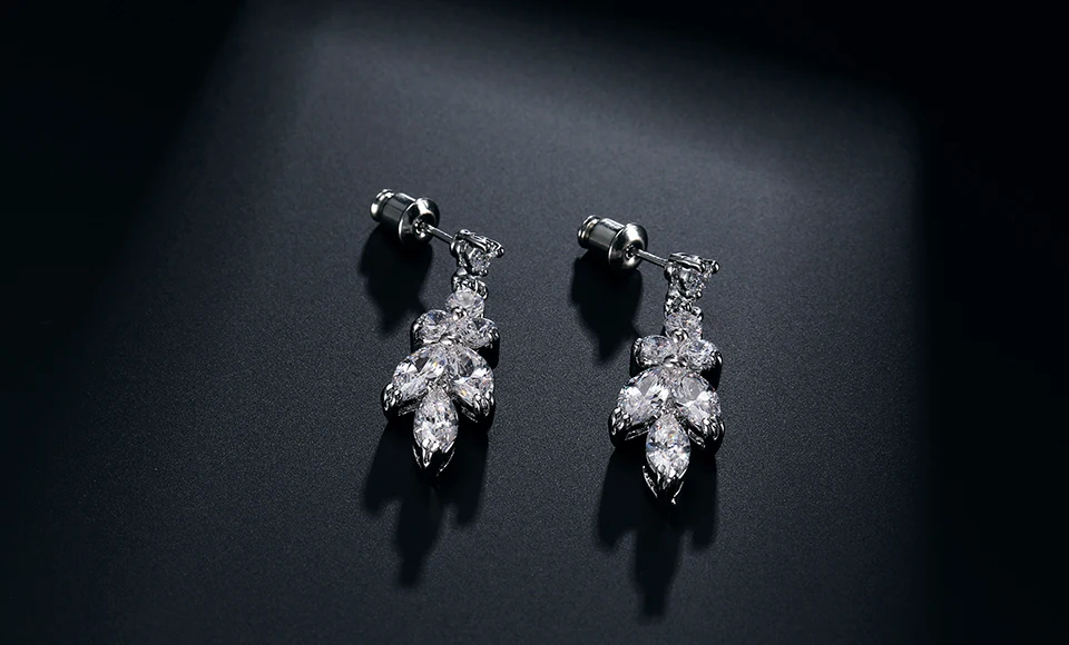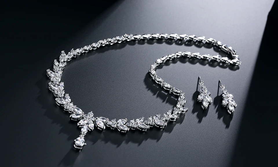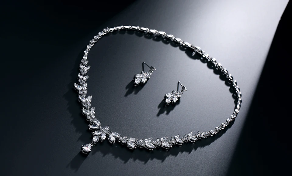 مجموعة مجوهرات رائعة من أقراط متدلية على شكل ورقة شجر للنساء من Buling من الزركون، مجموعات قلادات لحفلات الزفاف