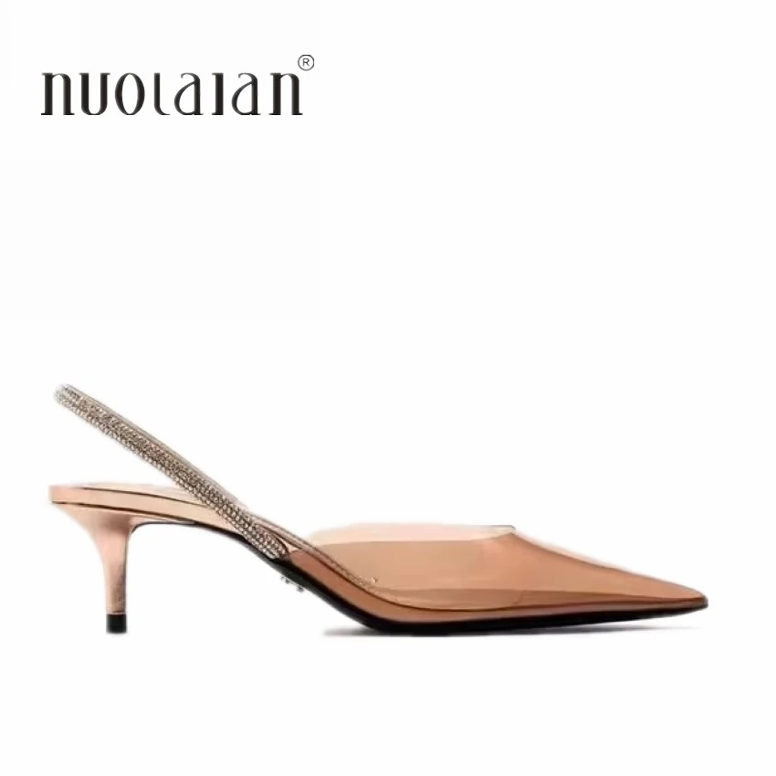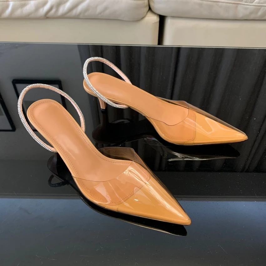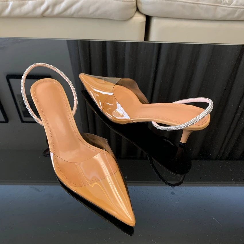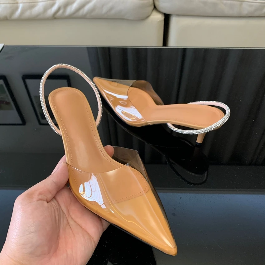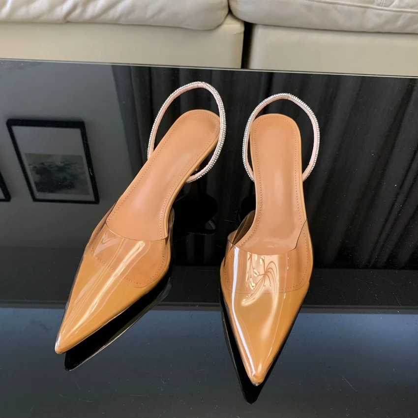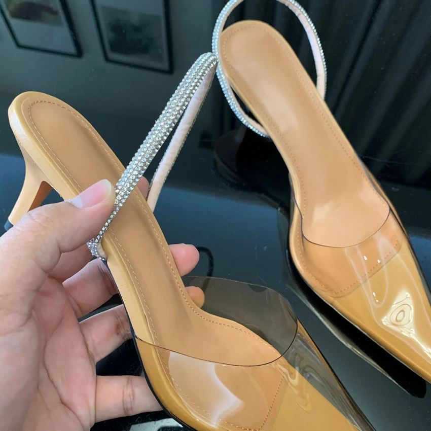 Fashion Summer Crystal Slingback Women Pumps Office Lady Transparent Heeled Sandals Elegant Pointed Toe Female Sexy High Heels