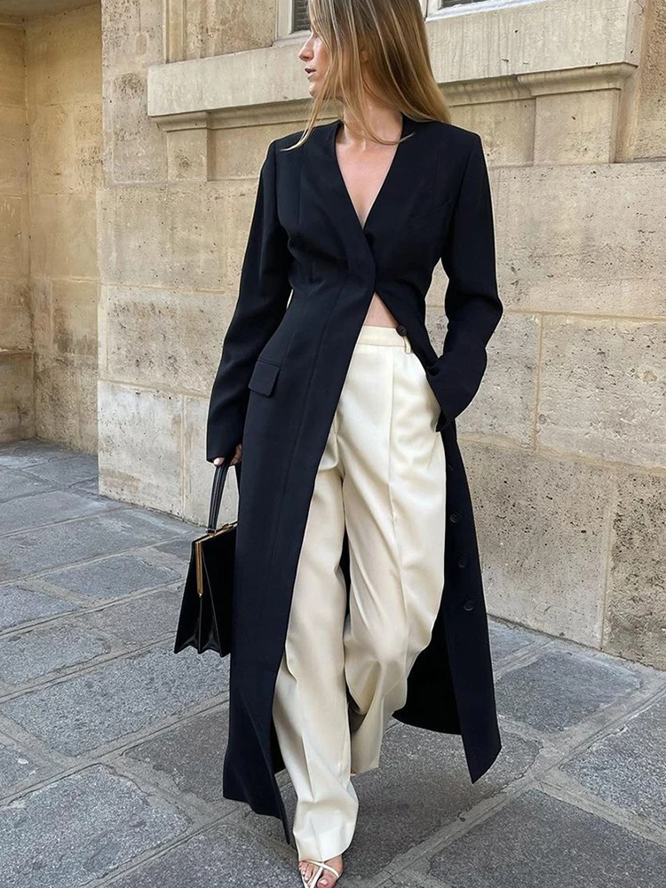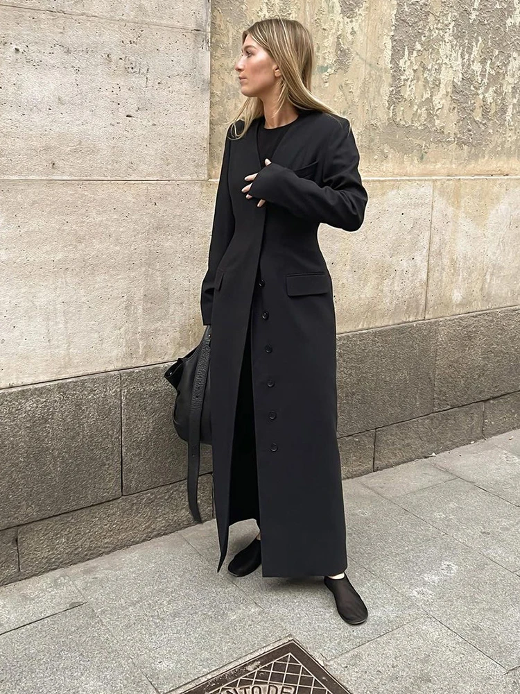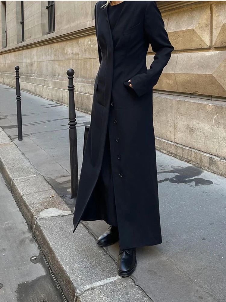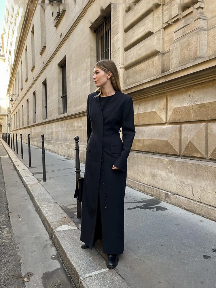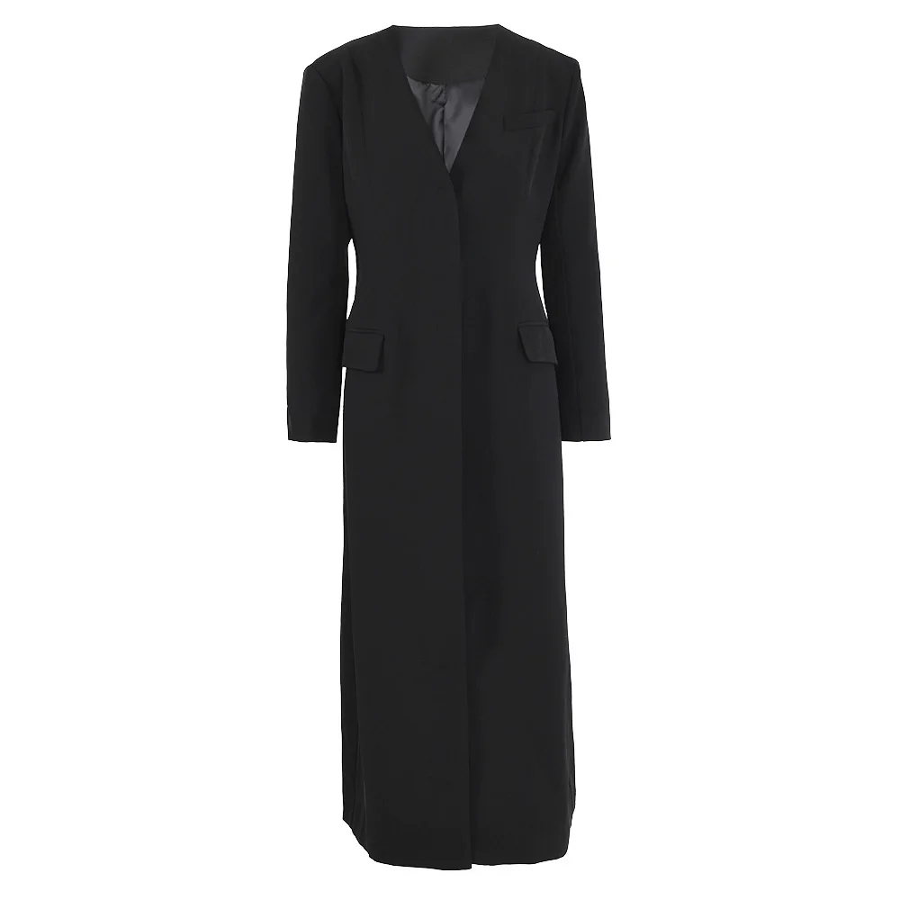 Fashionable and versatile single breasted mid length women’s jacket, 2024 autumn/winter black temperament coat