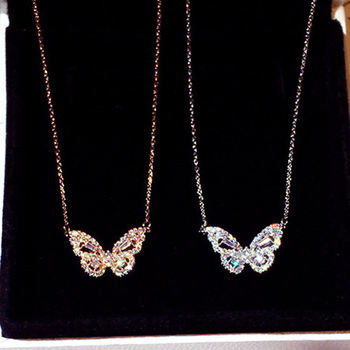 Huitan الإبداعية فراشة قلادة للنساء كامل المبهر تشيكوسلوفاكيا حجر موضة إكسسوارات فتيات حفلة مجوهرات التجميع اليومي
