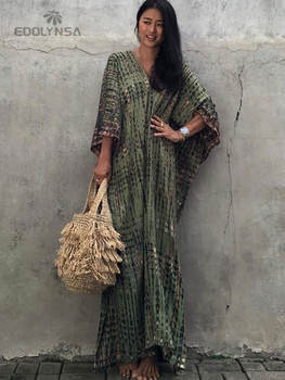 2022 البوهيمي مطبوعة المرأة فستان الشاطئ ثوب السباحة التستر الصيف تونك للمرأة بحر رداء دي بلاج قفطان Q1218