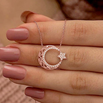 Huitan ارتفع الذهب اللون القمر و دلاية شكل نجمة قلادة للنساء مع لامعة تشيكوسلوفاكيا حجر لطيف الرقبة اكسسوارات حفلة مجوهرات الأزياء