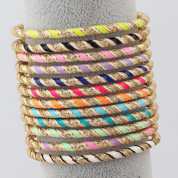 12 ألوان بوهيميا الملتوية هندسية المينا أساور للنساء الفتيات فاسق الملونة النحاس زركون تشيكوسلوفاكيا أساور هدايا الحفلات