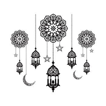 Islamic Home decor EID Mubarak Wall Sticker Black Moon lantern Mural wall Decal Ramadan decoration 2025 Muslim Window Stickers