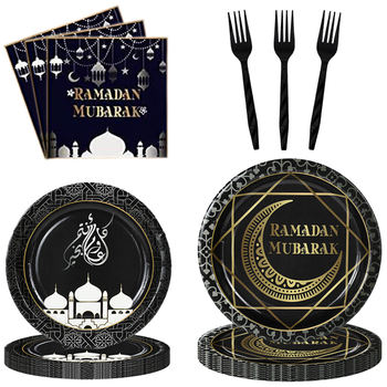 Eid al Fitr Party Decor Disposable Tableware Set Ramadan Fork Plate Napkins Family Party Baby Shower Birthday Eid al Fitr Party