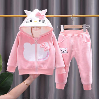 طفل الفتيات الشتاء هوديس مجموعة ملابس الاطفال سميكة الدافئة ملابس مخملية مجموعات الرياضة دعوى للأطفال الكرتون القط الصوف رياضية