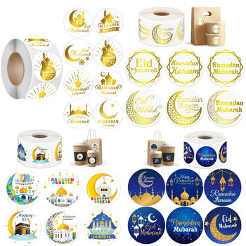 500pcs Ramadan Eid Mubarak Paper Roll Sticker Ramadan Kareem Gift Packaging Seal Lables Islamic Muslim party Decor for Home 2025