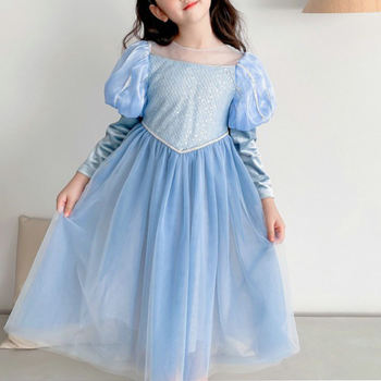 الخريف الفتيات فستان الأميرة نفخة الأكمام فستان عيد ميلاد الترتر لامعة ملابس الأداء زي الاطفال ملابس الأطفال