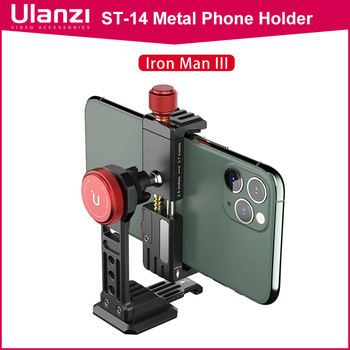 Ulanzi ST-14 الرجل الحديدي الثالث عمودي اطلاق النار المعادن الهاتف الذكي جبل حامل الحذاء البارد ترايبود جبل ل مصباح ليد Mic Vlog جبل