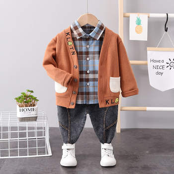 2021 الفتيان ربيع الخريف 3 قطعة/المجموعة/المجموعة ملابس الاطفال الفتيان السببية زر رسالة رياضية الأطفال معطف قميص السراويل ملابس رياضية الطفل
