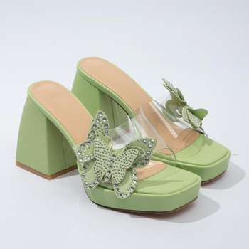 الصيف النساء النعال البلاستيكية 9 سنتيمتر عالية الكعب ساحة تو الانزلاق على الكلاسيكية مثير فراشة الراين الراين أحذية جديدة للمرأة