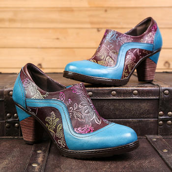الكعوب النساء 2023 ريترو موضة ناضجة جلد طبيعي البريدي 7 سنتيمتر جولة تو ساحة كعب مختلط الألوان فلوو أحذية النساء غير رسمية 36-42