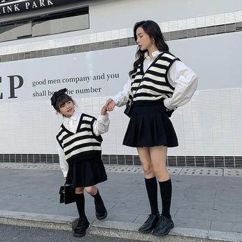 سترات عصرية بلا أكمام للأم والبنت سترات بدون أكمام مخططة سوداء صدرية للأسرة واحدة صدر ملابس للأم وابنها