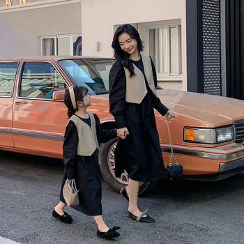 جديد وصول الربيع الأسود Vest سترة فستان وتتسابق الأسرة مطابقة الملابس مجموعة الأم Daughter مطابقة ألف خط فساتين مجموعات
