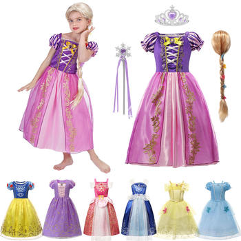 الفتيات رابونزيل الأميرة تأثيري فساتين حفلة هدية حسناء سندريلا أورورا سنو وايت صوفيا كرة شبكية ثوب عيد