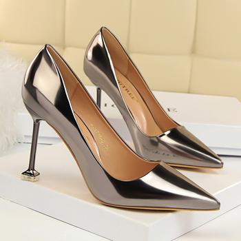 2023 النساء أحذية أشار تو مضخات فستان أحذية 9.5 سنتيمتر رقيقة عالية الكعب قارب أحذية مثير خمر بولي Patent براءات الاختراع والجلود أحذية الزفاف