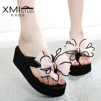 شبشب نسائي بكعب عالٍ وربطة عنق وميل ، شبشب رائع بزاوية ، نعل سميك ، صيفي