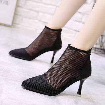 النساء الصنادل قطيع الدانتيل يصل 11 سنتيمتر الكعوب رقيقة عالية الكعب اللمحة تو الضحلة النساء أحذية sandalias موهير 2023 حجم 35-42 أسود