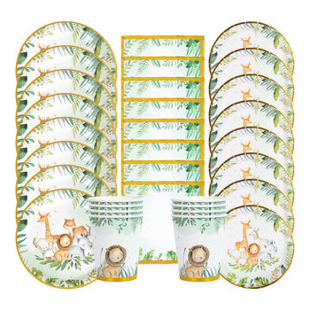 الغابة الحيوانات لوازم الطاولة/المائدة قابل للتصرف مجموعات الاطفال استحمام الطفل الغابات موضوع 1st حفلة عيد ميلاد ديكور لوحة كأس سفاري الحفلات المورد