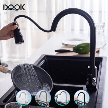 صنبور المطبخ الأسود المطبخ الحنفية سحب خلاط حوض مطبخ الحنفية نحى النيكل تيار رأس رشاش الكروم صنبور مياه للمطبخ